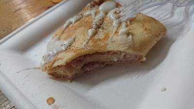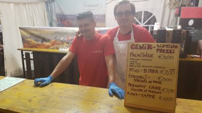 Za nami je še ena pisana in živahna izvedba Okusov ob meji, najbolj sladkosnedna pobuda, kar jih prirejamo. Svojo stojnico smo imeli kot ponavadi v Slovenski vasi na ulici Crispi, kjer domujemo vsa društva, včlanjena v Zvezo slovenske katoliške prosvete. Letos je naše društvo precej povečalo ponudbo. Ob ustaljenih sladkih palačinkah (z marmelado, čokolado in orehi), štrudlju, teranovem likerju in kavi ste si letos lahko pri nas privoščili tudi slane palačinke (pršut in sir) ter pivo...